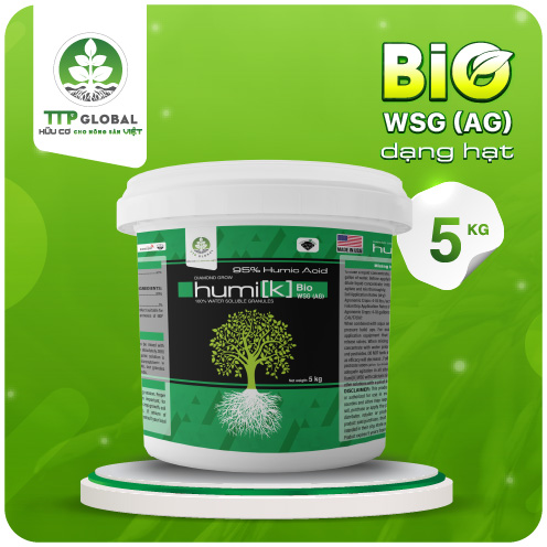 Phân Bio Humic là sản phẩm humic cao cấp hàng đầu hiện nay, do TTP GLOBAL phân phối độc quyền. Với hàm lượng axit humic lên đến 95% và hàng tỉ vi sinh vật Bacillus có lợi, sản phẩm hoàn toàn tan trong nước, giúp cải thiện cấu trúc đất, tăng khả năng hấp thụ dinh dưỡng, kích thích sự phát triển của rễ và tăng cường sức chống chịu với stress. Ngoài ra, Humic Bio WSG còn cân bằng hệ vi sinh vật, kiểm soát nấm khuẩn gây hại, và nâng cao hiệu suất cũng như chất lượng nông sản.