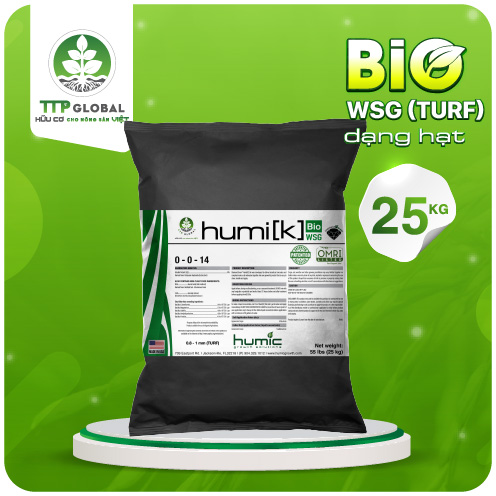 Phân hữu cơ USA – Humi[K] Bio WSG (TURF) là sản phẩm humic cao cấp hàng đầu hiện nay, được TTP GLOBAL phân phối độc quyền. Sản phẩm chứa đến 95% axit humic và hàng tỉ vi sinh vật Bacillus có lợi, hoàn toàn tan trong nước. Điều này giúp cải thiện cấu trúc đất, tăng khả năng hấp thụ dinh dưỡng, kích thích sự phát triển của rễ và nâng cao sức chống chịu với stress.